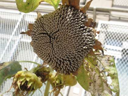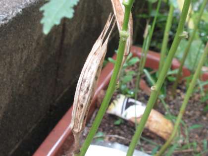 春に種をまいたホウセンカやヒマワリ・オクラ・ダイズ。花が咲いた後に実ができたり,枯れてきたりしています。茶色くなったオクラの実を割ってみると,中から種が出てきました。春に種まきしたときとそっくりの種が出てきて,みんな驚いていました。