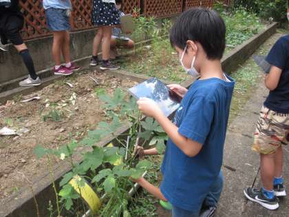 今日は,タブレットで花が咲いた後の写真をとり,教室で写真を見ながら学習をしました。