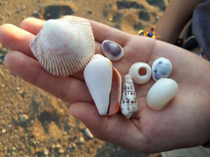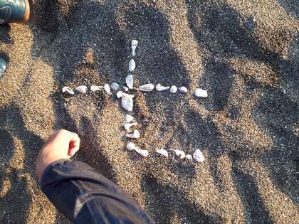 素敵な思い出が、また一つ。なんと、貝殻で七三の七、を型どってくれました。周りの、桜マークは、ちょっと難しい!とのことです。
