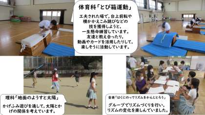 体を動かしたり,リズム遊びやかげふみ遊びをしたりして,