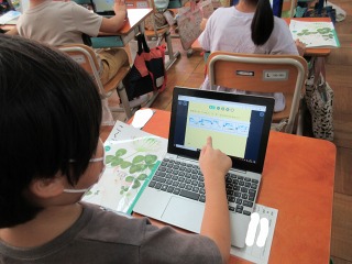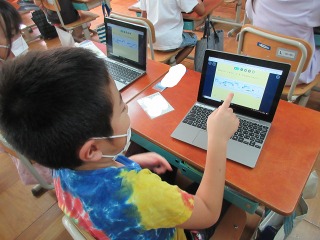 国語科「くじらぐも」の学習では,ロイロノートを使って,お話の順番に合うように絵を並び替えました。考えながら自分なりに並び替えることが出来ていました。