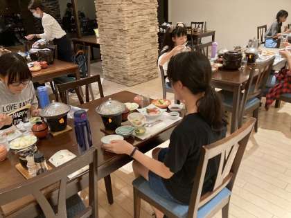 おいしく豪華な夕食に、もりもりご飯をおかわりして、楽しくすごしていました。
