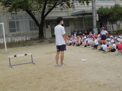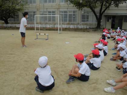スポーツ大会に向けて,障害物をとぶ練習をしました。昨年度も跳んだミニハードルやハードル1台が障害物です。どのように跳んだらよいのか,跳びこすときのポイントも考えました。「最後のハードルを越えるのがおもしろい。」「少し難しいな。」などの感想がありましたが,みんな最後まで走りぬいていました。本番も楽しみです。