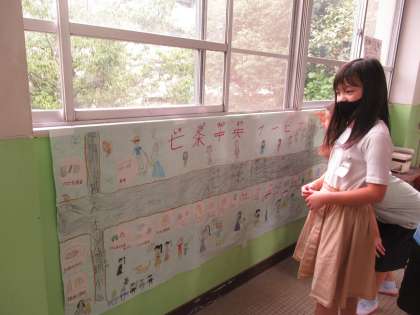 問題は全部で20個。低学年の子たちを中心に,廊下に掲示されたクイズに早速チャレンジしてくれています。中には,実際に商店街に行ってみないと答えが分からない問題も入っています。