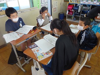 学習の最後は先生にインタビューして,友達に紹介する予定です。早速,休み時間にインタビューをしに行っている子どもたちもいました。