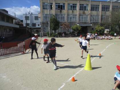 (2枚目の写真)学年合同で,スポーツ大会に向けてリレーの練習