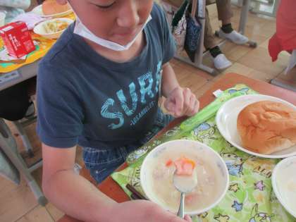 (3枚目の写真)今日の給食のシチューの中に,