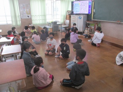 今年度初めてのたてわり活動がありました。6年生は,各班のリーダーとして,自己紹介とアイスブレークのゲームを準備して臨みました。「どうしよう,大丈夫かな」「緊張する…」と言っていましたが,取組途中の姿は,普段に増してとても頼もしかったです。