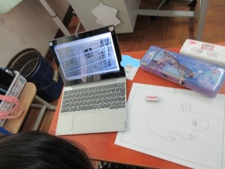 「しらせたいな,見せたいな」の学習では,自分の知らせたいものの写真をタブレットを使って撮りに行き,それを見ながらカードに描き写しました。お家の人にどんなことを伝えようか,自分なりに沢山考えていました。出来上がった紹介文をまたお家でも聞いてあげてください♪