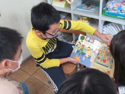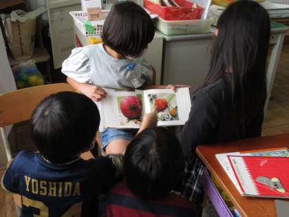 グループで選んだ本をどのように読み聞かせするのかについても話し合い,本番に向けて読み聞かせの練習をしています。