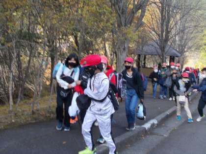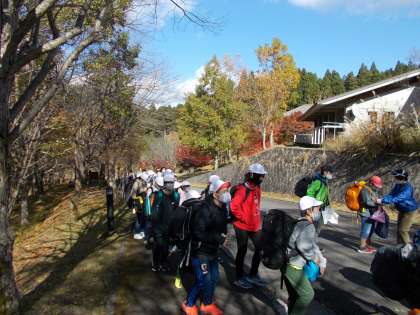 少し肌寒いですが,爽やかな中,到着です。美しい紅葉が迎えてくれます。入所式を終え,いよいよ活動開始です。