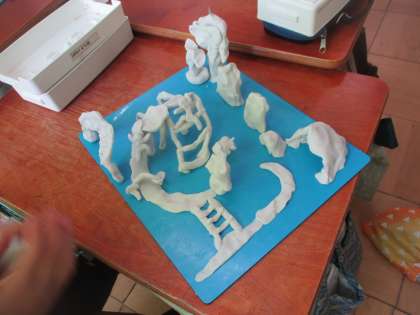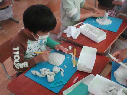 5・6時間目の図画工作科では,粘土を使って自分のまちを
