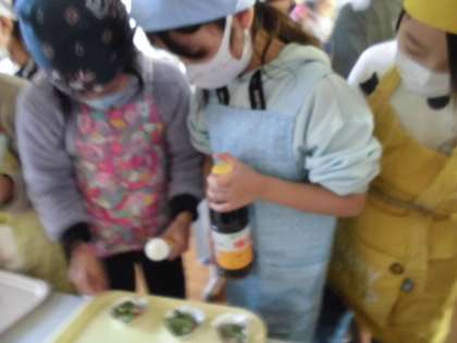 「また,食べたい。」「おうちでも作りたい。」「フライパンで焼いてもいいのですか?」と話していました。約20日で収穫できるので,おうちでもぜひ育ててみてください。