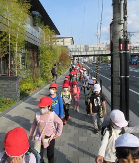 生活科の学習で,梅小路公園まで秋見つけに行きました。初めての校外学習でしたが,先生の話をしっかり聞き,行き帰りの並び方や信号の渡り方もばっちりでした!