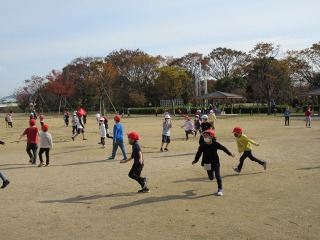 お昼ご飯の後は,みんなで楽しく遊びました。広い芝生の上でのびのび遊んでいました。帰るころには,「遊びまくって体力が残り1%や...。」とクタクタな様子でした。今日はきっとぐっすり眠れますね!ゆっくり休んで,明日も元気に来てほしいです!