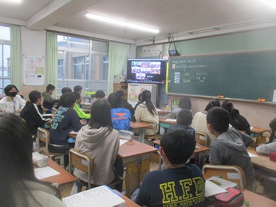 七条中学校の生徒会のみなさんが作ってくれた動画を視聴し,聞きたいことをあげました。それらをもとに,中学校ブロックの4校が各教室をつなぎ,生徒会のみなさんに質問をしました。実際の活動の様子を動画で見たり,直接質問することができて,中学校生活がより現実味を帯びてきたようでした。聞き切れなかった質問にも,後日返答がある予定です。