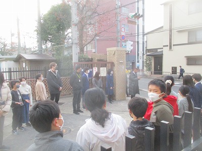 七条中学の生徒会の人達が来てくれ,一緒に朝のあいさつ運動に取り組みました。計画委員が中心でしたが,中には委員以外の人の姿もありました。しっかりあいさつできると,気持ちがいいものですね!