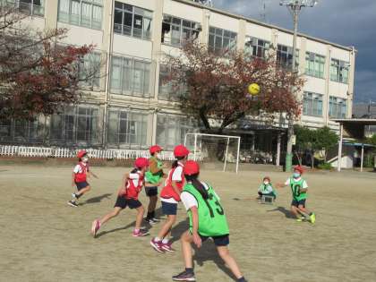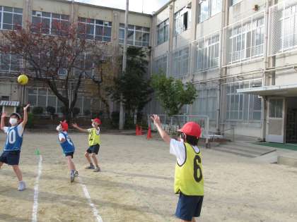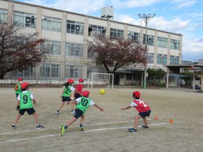 11月から取り組んでいるエンドボール,回を重ねるごとに,パスの回し方や守り方・シュートの仕方が上手になってきています。相手チームのボールの動きをよく見て,パスカットする姿も見られました。