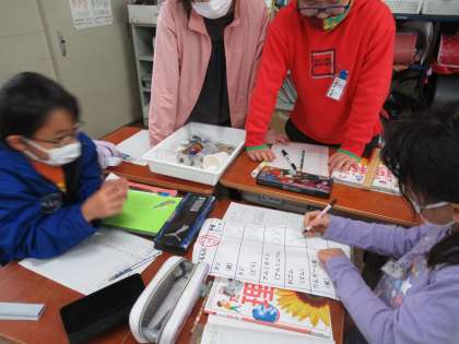 「これは,鉄でできているみたいだから,電気をとおすかな。」「アルミ箔は,ピカピカだけど,紙みたいだからどうかな…。」「銅でできたくぎは,電気を通すのかな。」一人一人が予想を立てた後,グループでたくさん話し合いました。次の時間の実験が,とても楽しみです。
