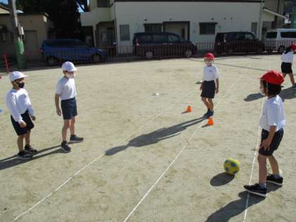 ボールけりゲームでは,先週まで,ボールを止めたりけったりする練習をパスをしながらしました。チームで協力して練習して,得意な児童が教えてあげている姿が印象的でした。