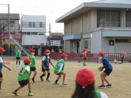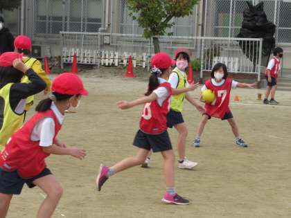 エンドボールの学習も,後半に入ってきました。フォワード・ガードマン・ゴールマンと,いろいろな役割を経験し,はじめの頃からみると,みんなかなり上手くプレーすることができるようになってきました。