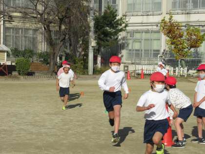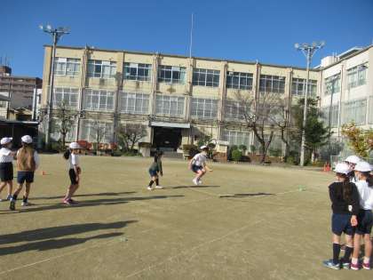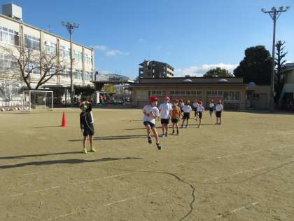 今日は気持ちのよい青空。体育の時間に,ゆっくりペース走に取り組みました。ペース走をした後には,大縄跳びを楽しみました。