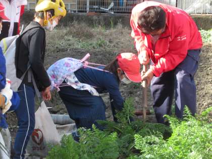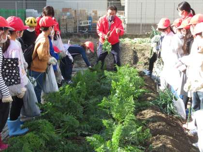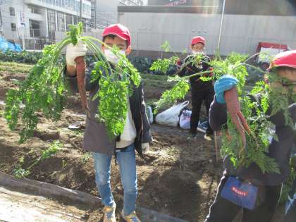 金時人参は,地面にしっかりとうまっていて,なかなかぬけませんでした。社会科の教科書に載っていた「おこし」という道具も見せていただきました。
