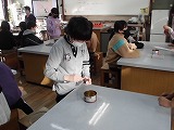 理科の学習で,アルコールランプの使い方について学習しました。初めてマッチを擦る人が多く,怖さからなかなかうまくマッチを擦ることができない子もいましたが,どうすればうまく火がつくか声をかけ合いながら行うことができました。アルコールランプに火をつけられた時は安心した様子でした。3学期からの「ものの温まり方」の学習で使っていく予定です。理科の学習の日は服装などに気をつけていただければと思います。