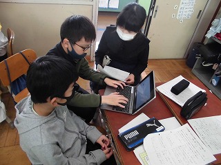 ハナヤ学習では,地球温暖化を防ぐために,自分たちにできることについて学習しています。今までは,エコライフチャレンジや自分で考えたオリジナルエコライフチャレンジに取り組んできました。今は,取り組んでみて自分たちがあまりできなかったことについてふりかえっています。クラスの友だちにアンケートをとって,できていた人の情報を集めるためにアンケートの内容を考えたり,ロイロノートを使ってアンケートをつくったりしています。