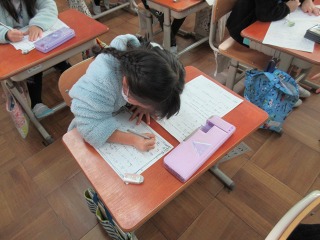 国語科の学習で手紙を書きました。誰に,どんなことを伝えるのか考えて,正しい書き方に沿って書きました。手紙を送る相手のことを思いながら真剣に書いていました。