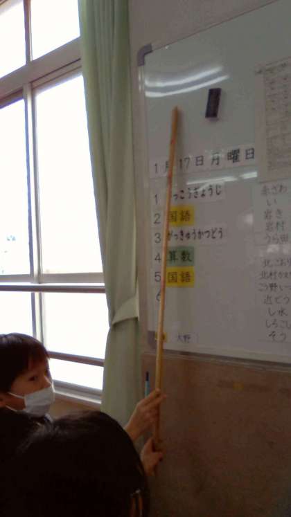 1メートルより長いと思われる長さの場所を見つけて,どれくらいの長さなのか予想し,確かめました。黒板の横は?ホワイトボードは?と予想を確かめることを楽しみました。