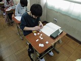 算数科では,「直方体と立方体」の学習をしています。4種類の画用紙を組み合わせて,箱の形をつくりました。それぞれの箱がどのような形でできているか調べると,「正方形だけの形でできているもの」「正方形と長方形の形でできているもの」「長方形だけの形でできているもの」と分けることができました。そして,正方形だけで囲まれている形を「立方体」,長方形と正方形,長方形だけで囲まれている形を「直方体」ということを学習しました。