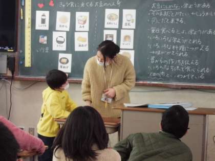 国語科「すがたをかえる大豆」の学習を通して,大豆がいろいろな食品に姿をかえて,私たちの食卓にならんでいることは知っている子どもたち。