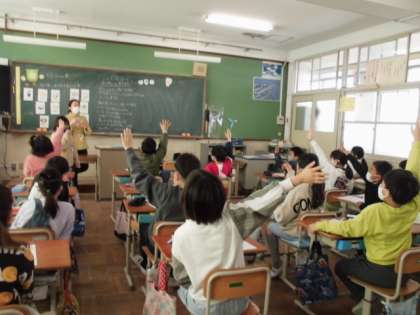 栄養教諭の松崎先生に,「大豆のへんしん」という授業をしていただきました。