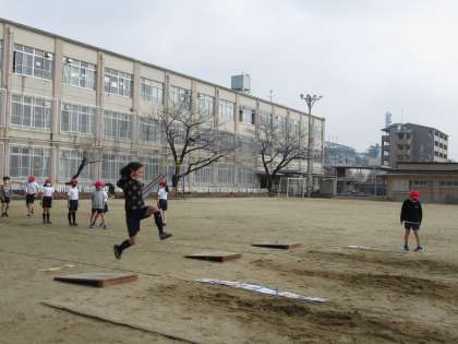 3学期は,サッカー・ポートボールと球技を中心に取り組んできた体育ですが,今週からはばとびに取り組み始めています。