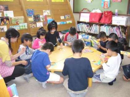 今年度,新しく入った図書を読む会。図書の本を整理していらなくなったカバーを使いジグソーパズルづくり。そして,子どもたちに人気の紙芝居。たっぷり1時間の学習はとても人気があり,子どもたちから「来年もやって」という嬉しい声を聞きました。