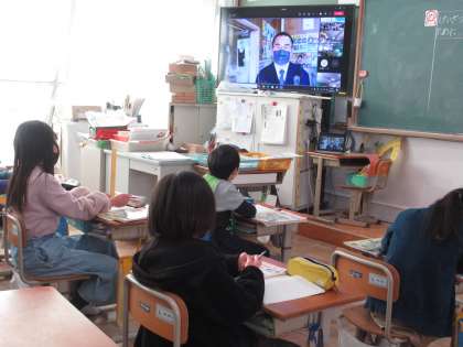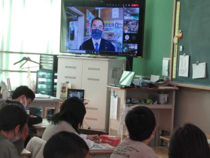 学校の隣にある花屋町交番とオンラインでつなぎ,交番に勤務されている警察官の方にお話をしていただきました。それぞれのクラスからの質問にも,答えていただきました。警察署や交番が,365日,24時間開いているということを聞いて,とても驚いている児童もいました。最後には,事故や事件から自分を守るためにできることも教えていただきました。