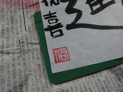6年間最後の習字の学習をしました。自分が選んだ言葉を書き,最後には先日体験で作らせていただいた落款印を押しました。赤いハンコが入ることで,ぐっと引き締まった作品になりました。宝物が一つ増え,うれしいですね。