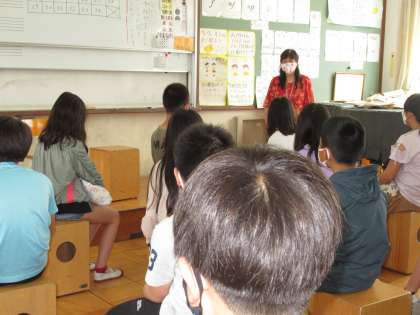 1週目は,どのクラスも学級活動の時間が多かったのですが,教科学習にも取り組み始めました。4年生のときには理科だけを違う先生に教わっていましたが,5年生では音楽科・家庭科・書写なども担任以外の先生に教わります。教室を移動して学習することも増えます。写真は,音楽室・理科室で学習している様子です。