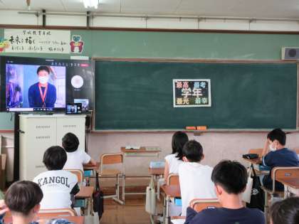 Teamsの会議で3クラスをつなぎ,学年集会をしました。