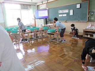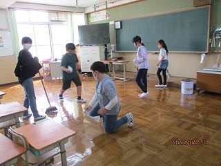 6年生はそうじ時間に1年生の教室をそうじしています。