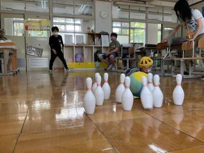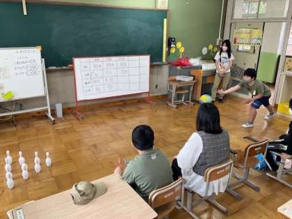 算数で,ボーリングを楽しみながら点数を数える学習をしました。ボーリングを楽しんだ後,誰が何点取ったか,計算して答えを出しました。どの子も点数計算が素早く担任も驚かされました。