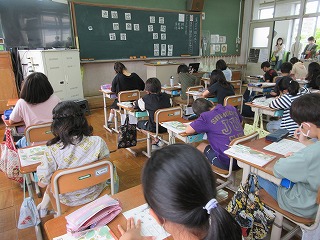 たくさんのお家の人が見に来てくださっているなかで,一生懸命手を挙げて発表し集中して学習に取り組んでいました。明日は,部首の意味やそれが使われている漢字をもっと見つけます。