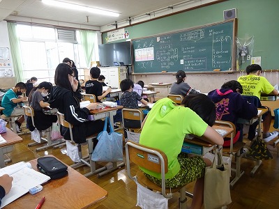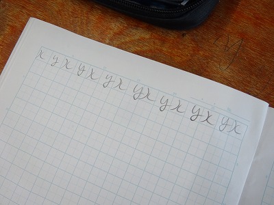 文字を使った式を立てています。xとyは,書き方も特徴的です。何がx,yに当たるのかしっかり考えて,問題に取り組んでいました。