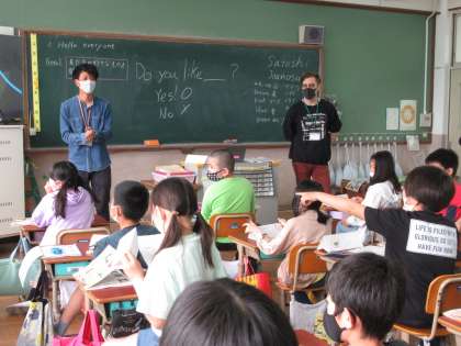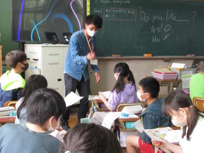 自分の名前や好きな物を相手に伝えたり,相手の好きな物を聞き取ったりしました。ALTのアンドリュー先生と一緒に,バトルシップというゲームも楽しみました。