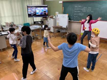 今日は,下京・東山支部の育成学級による合同行事「育成 入学・進級おめでとう会」がありました。ZOOMを繋ぎ,各校と自己紹介や,ゲーム,ダンスを通して交流します。
