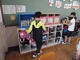 前回,「体積」の学習で1㎥の量感について学習しました。今回は,教室内にあるロッカーや教室の大きさ,消しゴムや教科書などの身の回りのものの体積について調べました。教室の体積を調べると約190㎥と分かり「前,調べた1㎥の大きさが190個も入るのか。」と驚いた様子でした。