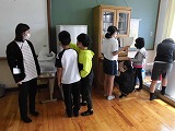 5年生になって初めて家庭科室を使いました。今日は,家庭科室にはどんなものが置いてあるのか室内を探検しました。鍋やフライパンといった調理に使うもののほか,ミシンやアイロンなども使うものを見つけられました。また,冷蔵庫やコンロなど普段の教室にはないものをたくさん探すことができました。