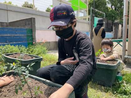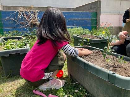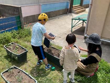 この日はさくら学級でミニトマト,ピーマン,さつまいもの苗を植えました。苗を植えるのが初めての児童もいましたが,皆楽しんで苗を植えていました。収穫が楽しみです!