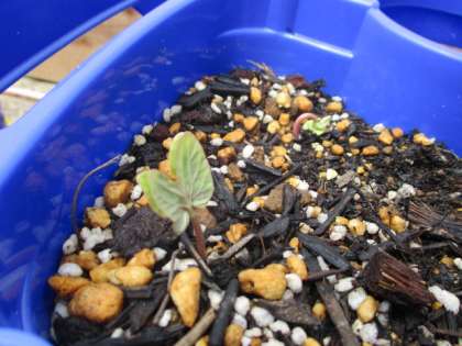 この間蒔いたアサガオの種から芽が出始めました。